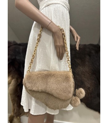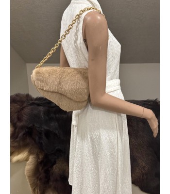 This bag is full of tenderness and cuteness. The bag body is made of light brown plush material, which is delicate and soft, and feels great, as if giving people a warm hug. The bag is in a small arc shape, with a gold chain shoulder strap, and the golden luster adds a touch of exquisiteness and luxury to the bag. In addition, there is a plush ball pendant hanging on one side of the bag, which echoes the material of the bag body and adds a playful and smart touch.