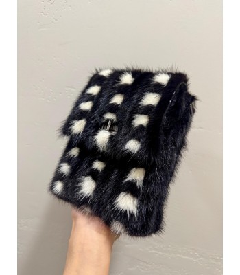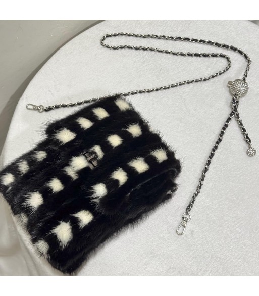 This bag is uniquely designed and full of fashion. The bag body is made of plush material, presented in the form of black and white blocks. The black and white color scheme is classic and eye-catching. The plush is fluffy and soft, and has an excellent touch. The front of the bag is decorated with metal buckles, adding a sense of refinement and practicality. The overall shape is small and exquisite. Whether it is held in the hand or used as an accessory to match clothes, it can easily become the focus.