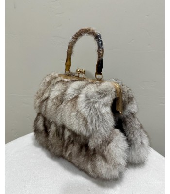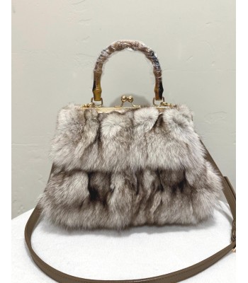 This handbag perfectly combines luxury and retro. The bag is made of fluffy and soft light gray fur. The natural fur texture has a high-end feel. The metal clip and bamboo handle design are full of retro charm. It not only retains the elegance of the classic handbag, but also adds warmth and elegance in winter through the fur material. It is matched with a leather shoulder strap in the same color, which is suitable for carrying on a variety of occasions.