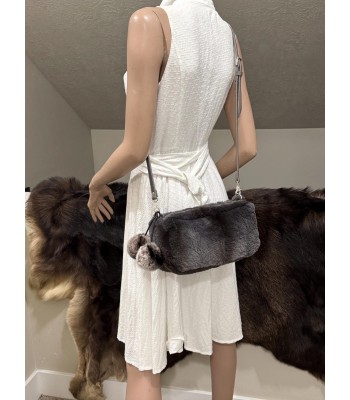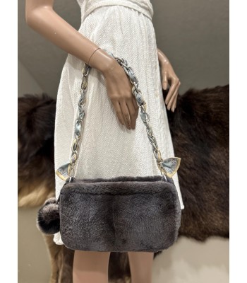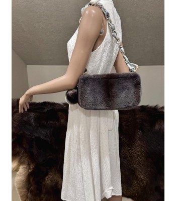 This bag cleverly combines softness and sophistication. The bag body is made of dark gray plush material, which is delicate and fluffy to the touch and has a warm atmosphere. The unique chain shoulder strap design, the metal chain and the printed silk scarf are spliced together to create a unique fashion spark. It is matched with a long leather shoulder strap in the same color. It can be carried on one shoulder or crossbody. With the cute plush ball pendant, it adds agility and fun to the overall look. It is a fashionable item that combines practicality and beauty.
