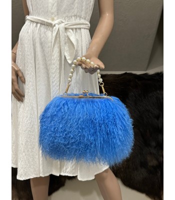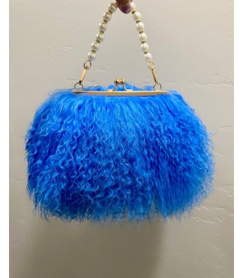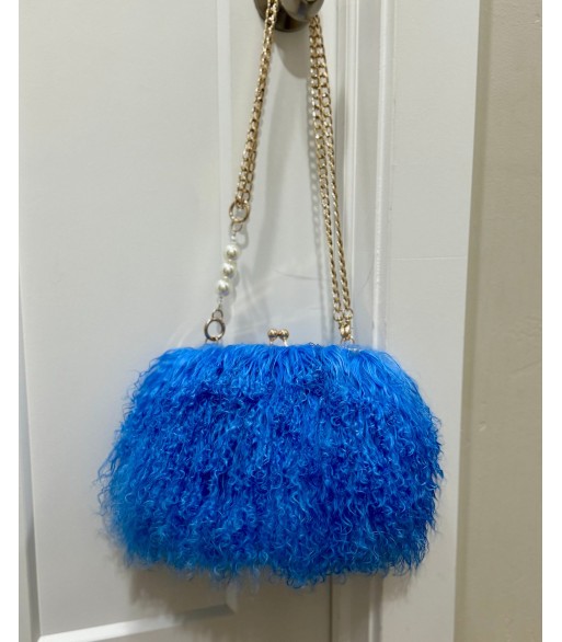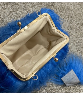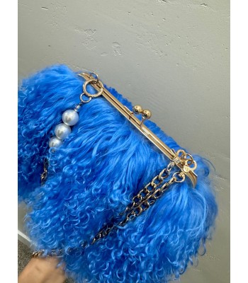 This bag is made of bright royal blue plush. The fluffy and curly fur surface has a playful and lively atmosphere, like kneading the blue sky into the fabric. The top is a metal hinged opening and closing design, decorated with a short chain made of pearls. The pearls are warm and soft, colliding with the bold blue plush to form a "conflicting beauty". The overall look is both retro and gorgeous, and full of fashion personality. It is a unique item that attracts the most attention.