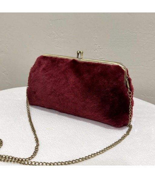 This clutch is made of burgundy plush. The plush is thick and soft to the touch, just like holding a warm velvet cloud in your hand. The metal hinge design is exquisite and neat, adding a touch of retro elegance to the bag. With a distressed metal chain, it can be carried by hand or cross-body. The style switches freely between retro gorgeousness and daily practicality. It is a treasure item that brightens up your outfit in autumn and winter.