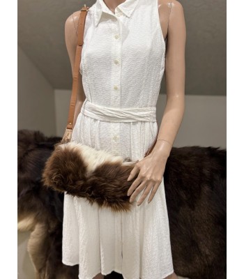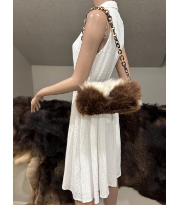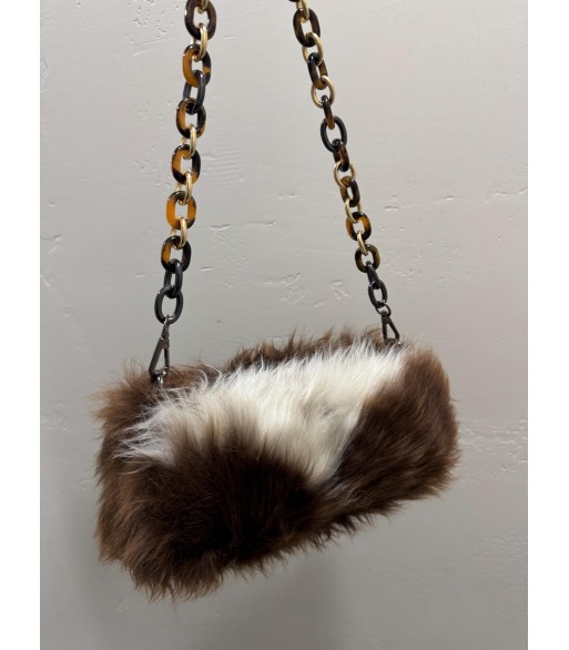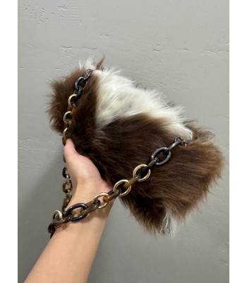 This bag is made of brown and white color-blocked plush. The fluffy hair has a casual and lazy temperament, which is reinterpreted in a fashionable language. It is paired with a personalized color-blocked thick chain shoulder strap, a mix of metal and resin materials, and a wonderful "sense of conflict" between the hard chain and the soft plush. The overall style is both retro and modern, and full of trendy avant-garde feeling. It is an eye-catching item that all stylists want to keep privately.