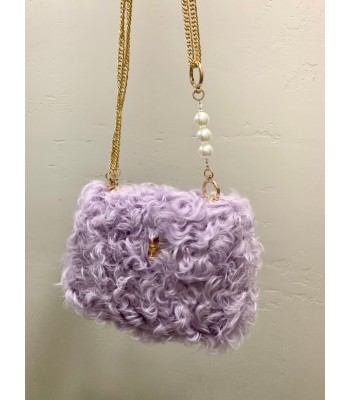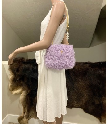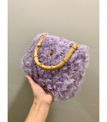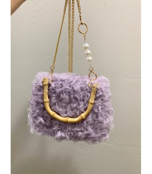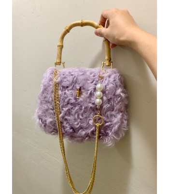 This bag is made of soft lavender plush. The fluffy and curly plush seems to weave the light purple mist of spring into it. It feels soft and airy. The natural bamboo handle has a natural warm texture, which forms a wonderful echo with the plush. The gold chain shoulder strap is exquisite and eye-catching, and is also dotted with a few round pearls. The metallic luster of the chain, the soft halo of the pearls, and the bamboo and plush are integrated, combining natural poetry with fashionable exquisiteness. It is a romantic and unique fashion item.
