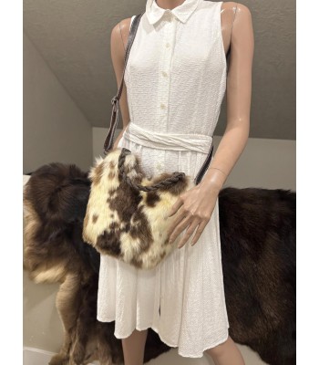 This bag is made of cow-like plush, with brown and white spots that are natural and casual, restoring the wildness of pasture elements. With a braided handle, the rough texture and soft plush collide to create a wonderful "sense of conflict", plus an adjustable leather shoulder strap, which not only retains the retro tone of the handbag, but also meets the practical needs of cross-body. The overall style integrates the pastoral relaxation and fashionable design sense, making it an "atmosphere artifact" that attracts attention when going out.