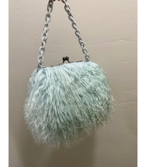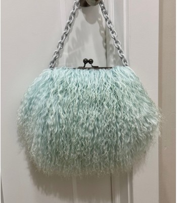 This bag is made of soft mint green plush. The fluffy and curly long hair is like the light morning mist on the meadow in spring, which is completely collected in the bag. Each hair is fresh and healing, and has a relaxing atmosphere. With a tough silver-gray chain handle, the coldness of the metal and the softness of the plush form a strong contrast, colliding with a wonderful fashion spark. The overall style freely wanders between fresh romance and personality coolness, and it is an "atmosphere artifact" that can instantly light up your outfit.