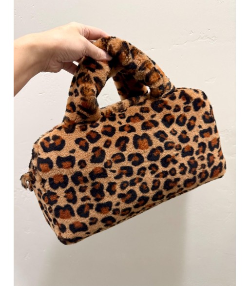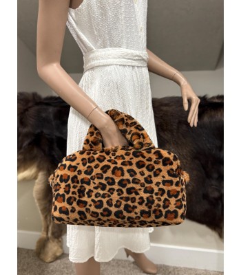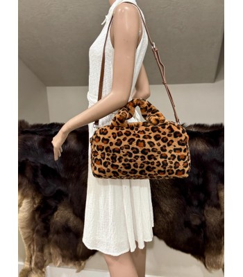 This bag is crafted from classic leopard-print plush fabric, featuring a tan base with black spots, authentically capturing the wild texture and exuding a cool aura. The handles are integrated into the body of the bag, and the plush is thick and soft, providing a comfortable grip. The overall design is simple and elegant, cleverly blending wildness with fashion, making it a statement piece that easily elevates your outfit.