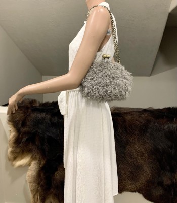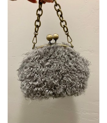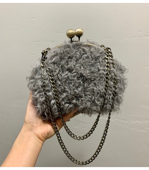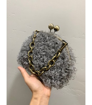 This bag is crafted from fluffy gray curly plush, which is curly and layered, soft to the touch and boasts a unique texture. It feels as if the softness of winter clouds has been incorporated into the design, evoking a relaxed and laid-back vibe. The metal hinges and distressed chain shoulder strap create a striking contrast between the vintage metal texture and the soft plush, creating a unique and stylish statement. The overall style seamlessly balances retro aesthetics with a relaxed and relaxed feel, making it a unique piece that adds a touch of flair to any outfit.